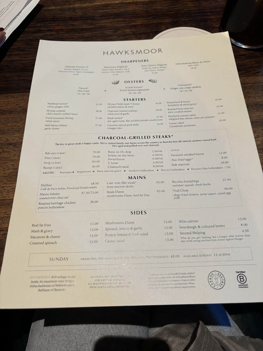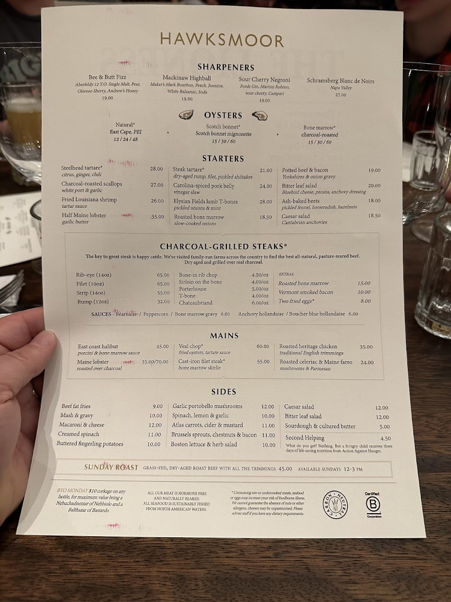 Welcome to Hawksmoor NYC, a culinary gem nestled in the heart of New York City. Located at 109 E 22nd St, this British steakhouse delivers an unforgettable dining experience with a menu that celebrates the finest ingredients. The starters alone set the stage for excellence—think succulent Old Spot Pork Belly with vinegar slaw and Charcoal-Roasted Scallops in a rich garlic sauce.